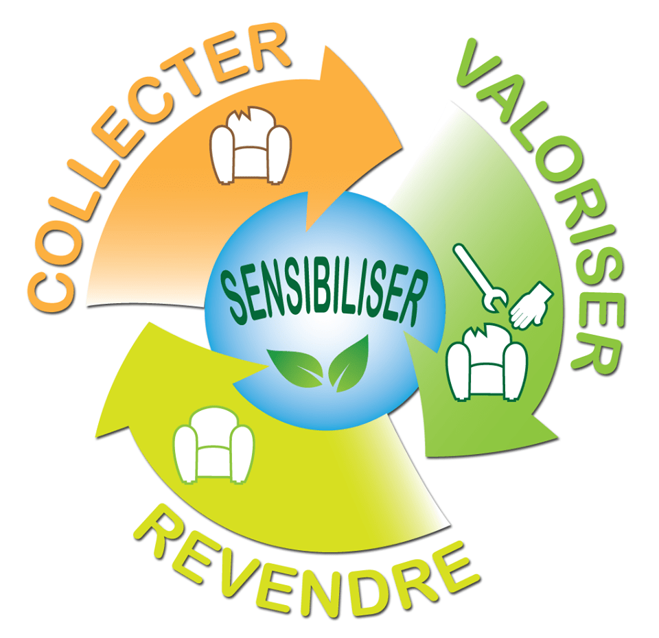 3 • La revente : revente directe sans distinction des publics ou revente à vocation sociale des objets qui constitue l’aboutissement de la filière réemploi et permet d’assurer une part de ressources propres pour tendre vers la pérennité des postes salariés. Partenariat avec les acteurs de la solidarité.